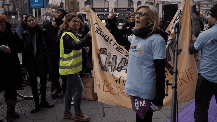 Am 7. März 2019 fand in Berlin vor dem Bundesgesundheitsministerium eine Aktion für bessere Bedingungen in der (unbezahlten) Sorgearbeit und Pflege statt.
