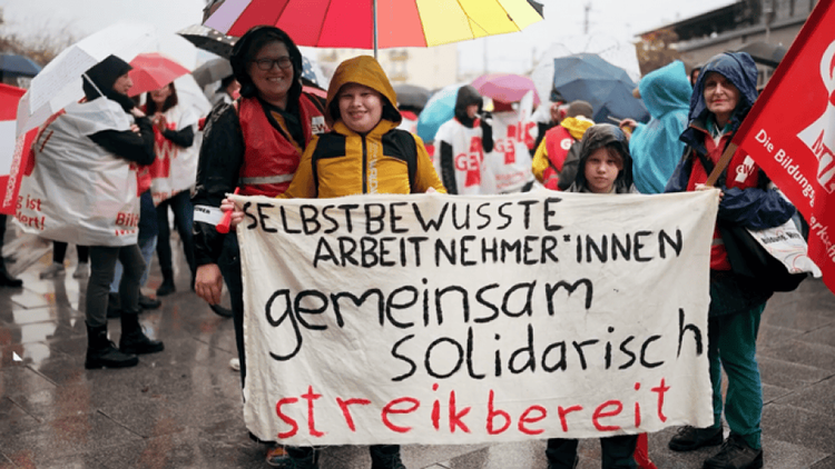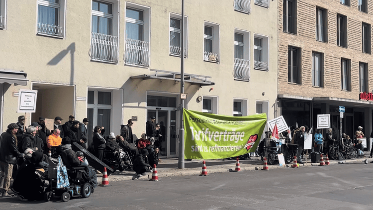April 2025: Protest gegen die Beerdigung des Arbeitgeber*innenmodells, Assistenzkräfte protestieren gegen Tarifstillstand