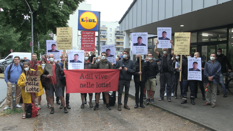 Action in solidarity with murdered unionist Adil Belakhdim on June 30 in Berlin